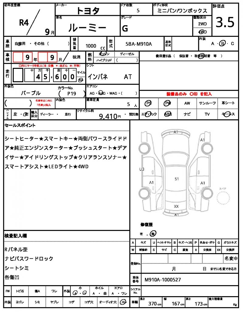 Meet the 2022 TOYOTA ROOMY, a stunning purple minivan that’s sure to turn heads. Under the hood, you’ll find a reliable 1000 cc gasoline engine, paired with a 4WD system that’s perfect for navigating rough terrain, and features like power steering and power windows make driving a breeze. This vehicle is a used car from Japan, available exclusively through AutoXGlobal for international buyers. For international buyers seeking a reliable and spacious ride, the used TOYOTA ROOMY export from Japan is an excellent choice.