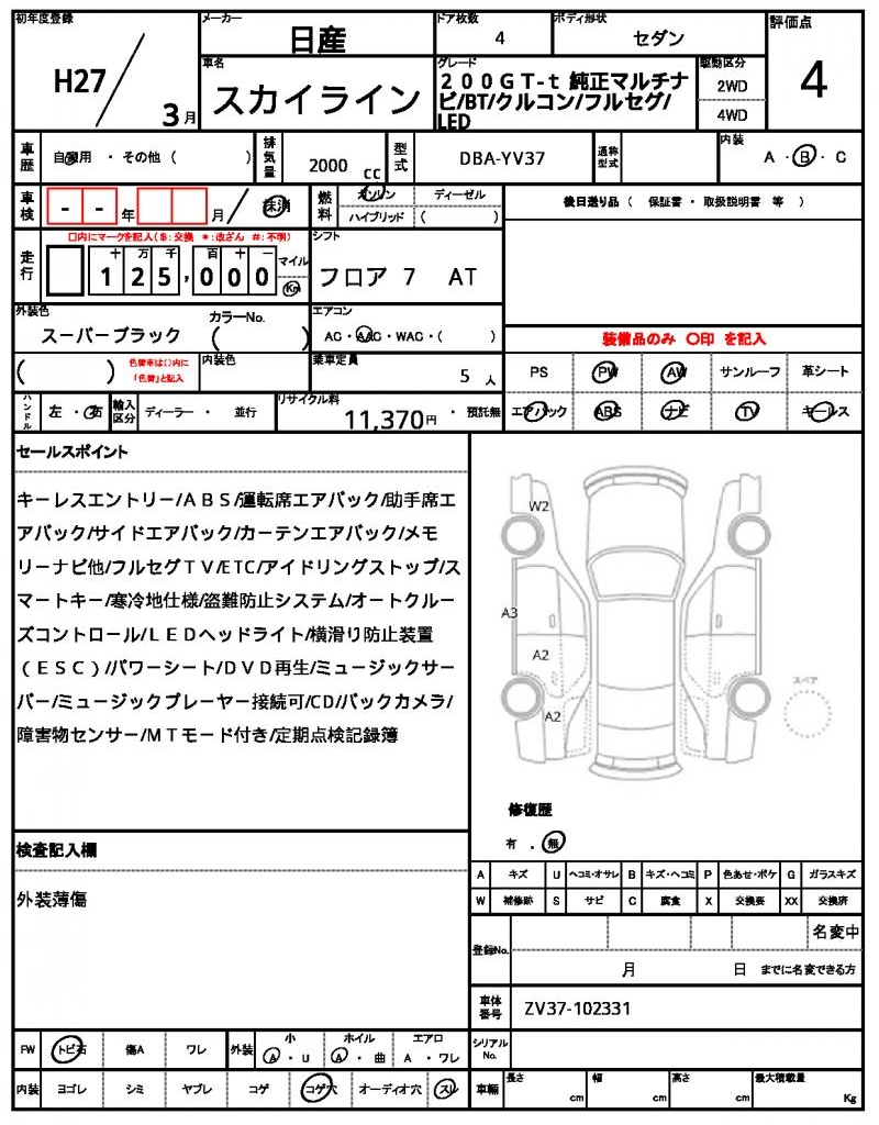 The 2015 NISSAN SKYLINE Sedan, a sleek and powerful ride, boasts a bold black exterior. Under the hood, you’ll find a 2000cc engine fueled by gasoline and paired with a 2WD drivetrain, along with convenient power windows to make getting in and out a breeze. This used car is available for international buyers through AutoXGlobal, making it easy to bring this Japanese gem to your doorstep. If you’re looking for a reliable and feature-packed SKYLINE, look no further – this Japanese used car export is ready to hit the road.