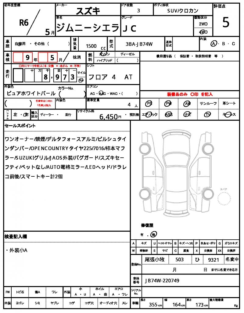 The 2024 Suzuki Jimny Sierra is a stunning Pearl-colored SUV that’s ready for its next adventure. Under the hood, you’ll find a reliable 1500cc engine that’s paired with 4WD for maximum traction, along with features like power steering and power windows to make driving a breeze. As a used car from Japan, this Jimny Sierra is available for international buyers through AutoXGlobal. Whether you’re looking for a rugged off-road companion or a reliable daily driver, this Japanese used car export is sure to impress.