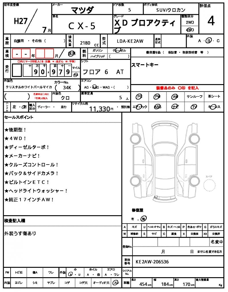This stunning 2015 Mazda CX-5 SUV is presented in Pearl, a beautiful shade that’s sure to turn heads. Under the hood, you’ll find a reliable 2180cc diesel engine, paired with 4WD for added traction, and featuring power steering and aluminum wheels. As a used car from Japan, this Mazda CX-5 is available exclusively through AutoXGlobal for international buyers. Don’t miss this opportunity to import a quality Japanese used car export – the 2015 Mazda CX-5 is a fantastic choice for anyone looking for a reliable and feature-packed SUV.