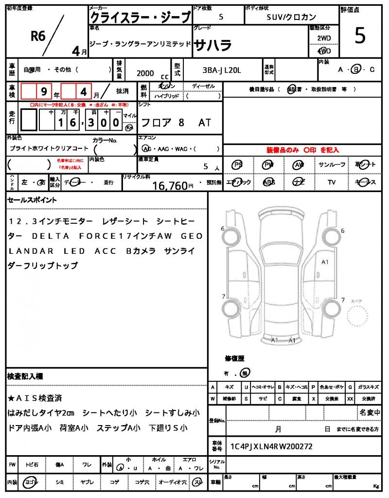 Meet the 2024 Chrysler Jeep Wrangler Unlimited, a sleek white SUV that’s ready for adventure. Under the hood, you’ll find a 2000cc engine running on gasoline, paired with a 4WD system for maximum traction. As a used car from Japan, this vehicle is available for international buyers through AutoXGlobal, offering a unique opportunity to own a reliable ride. This Japanese used car export is the perfect blend of off-road capability and on-road comfort, featuring power steering and power windows for a smooth ride. The Chrysler Jeep Jeep Wrangler Unlimited is available for export from Japan through AutoXGlobal.