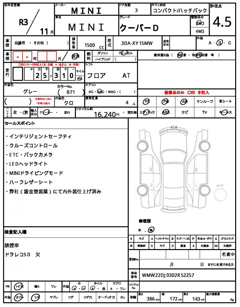 Meet the 2021 MINI Hatchback, a stylish and efficient ride that’s turning heads on the road. Under the hood, you’ll find a 1500cc diesel engine that’s paired with 2WD, making it perfect for city driving. This reliable ride also features power steering and power windows for added convenience. Available exclusively through AutoXGlobal, this Japanese used car export is ready to be shipped to international buyers, offering a unique opportunity to own a pre-loved 2021 MINI Hatchback. The Mini Mini is available for export from Japan through AutoXGlobal.