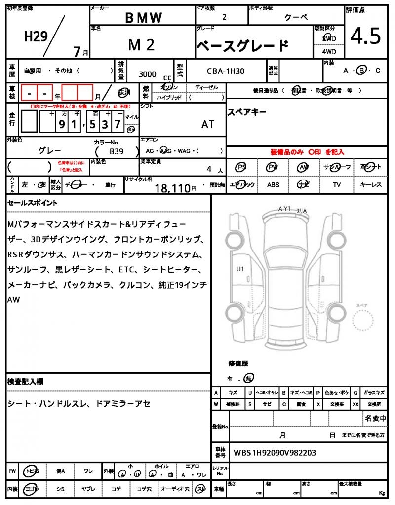 This stunning 2017 BMW M2 Coupe is presented in a sleek gray finish, a true head-turner on the road. Under the hood, you’ll find a powerful 3000cc engine fueled by gasoline, paired with a smooth 2WD drivetrain and backed by features like power steering and power windows. As a used car export from Japan, this M2 is available for international buyers through AutoXGlobal. Whether you’re looking for a thrilling ride or a reliable commuter, this Japanese used car export from AutoXGlobal has got you covered with its iconic BMW M2 badge.