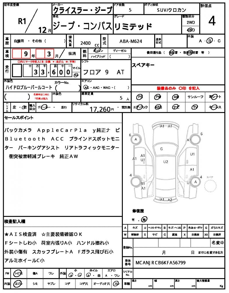 This sleek 2019 Chrysler Jeep Compass SUV stands out with its vibrant blue exterior. Under the hood, you’ll find a reliable 2400cc gasoline engine, paired with a 4WD drive system and features like power steering and power windows. As a used car from Japan, this Compass is now available for international buyers through AutoXGlobal. Don’t miss the opportunity to own a quality Japanese used car export, the 2019 Chrysler Jeep Compass. The Chrysler Jeep Jeep Compass is available for export from Japan through AutoXGlobal.