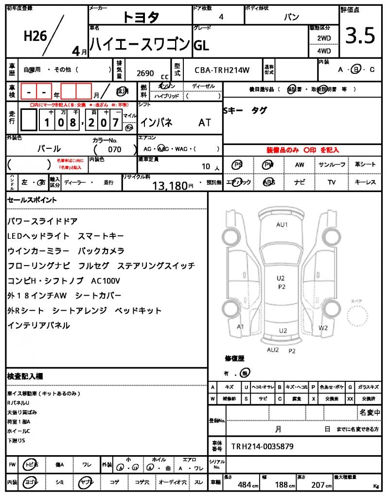 The 2014 Toyota Hiace Wagon, a reliable and spacious minivan, is finished in a beautiful Pearl color. Under the hood, you’ll find a 2690cc gasoline engine, coupled with a smooth 2WD drive system and equipped with power steering and power windows. This fantastic vehicle is now available for international buyers through AutoXGlobal, a leading used car export service. If you’re looking for a tried-and-true Japanese used car export, the 2014 Toyota Hiace Wagon is an excellent choice.