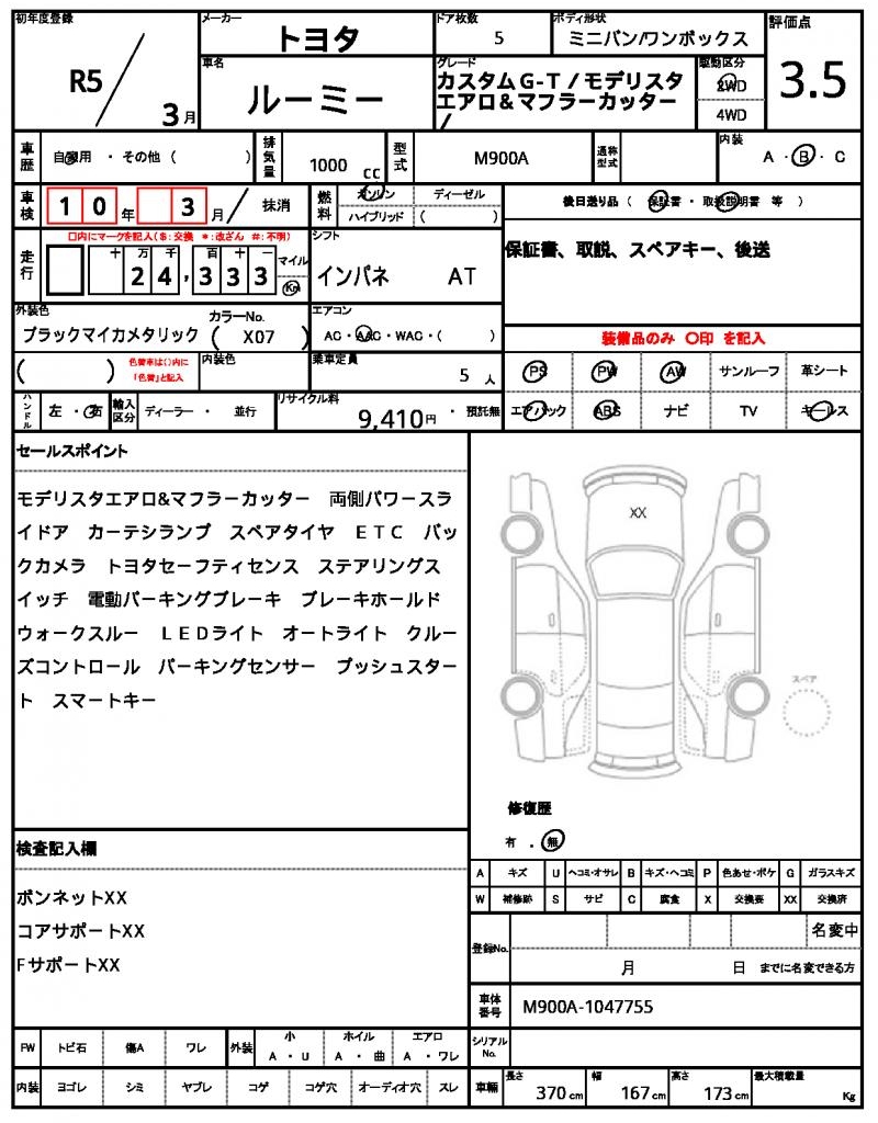 Meet the 2023 TOYOTA ROOMY, a sleek black minivan that’s perfect for families or those who need a spacious vehicle. Under the hood, you’ll find a reliable 1000cc gasoline engine, paired with 2WD for smooth handling and power steering to make navigating a breeze. As a used car from Japan, this ROOMY is available for international buyers through AutoXGlobal. This Japanese used car export is a great find for anyone looking for a dependable and feature-packed ride, with power windows and aluminum wheels to boot – all wrapped up in the TOYOTA ROOMY package.