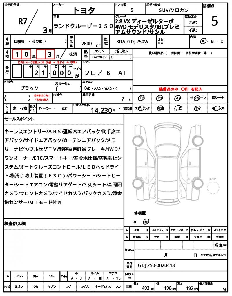 Meet the 2025 Toyota Land Cruiser 250, a black SUV with a commanding presence. Under the hood, you’ll find a powerful 2800cc diesel engine, paired with a four-wheel-drive system for maximum traction and control, and features like power steering and power windows for a comfortable driving experience. This vehicle is a used car from Japan, now available through AutoXGlobal for international buyers. If you’re looking for a reliable and rugged ride, the 2025 Toyota Land Cruiser 250 is a top choice for export from Japan.