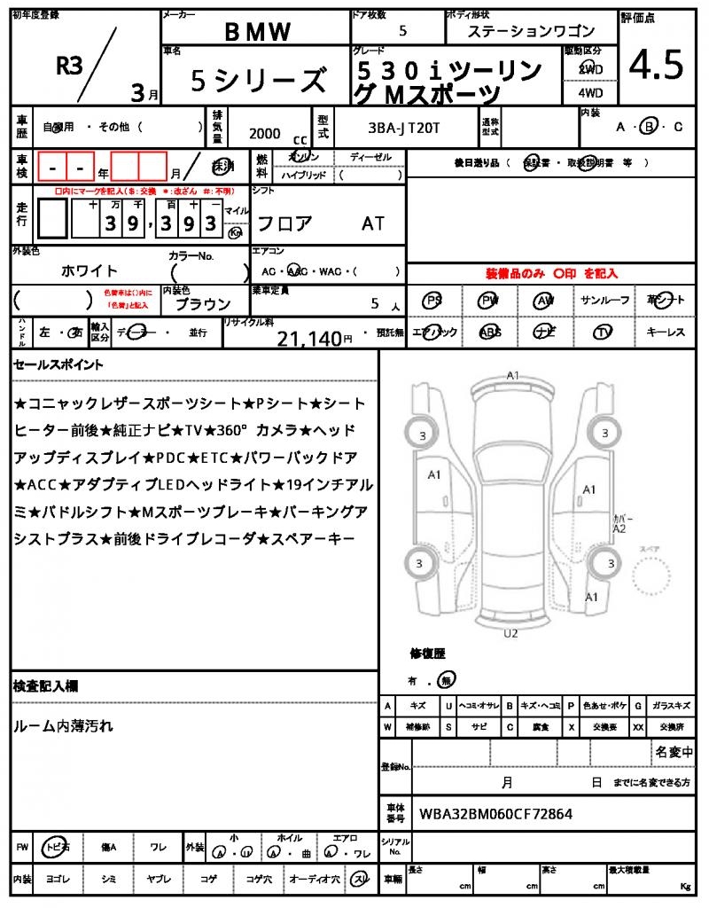 This stunning 2021 BMW 5 SERIES Wagon is a beautiful white ride. Under the hood, you’ll find a 2000 cc engine that runs smoothly on gasoline and is equipped with power steering for a smooth ride. As a used car from Japan, we’re proud to offer this vehicle to international buyers through AutoXGlobal. Check out this exceptional Japanese used car export, the 2021 BMW 5 SERIES Wagon, available now.
