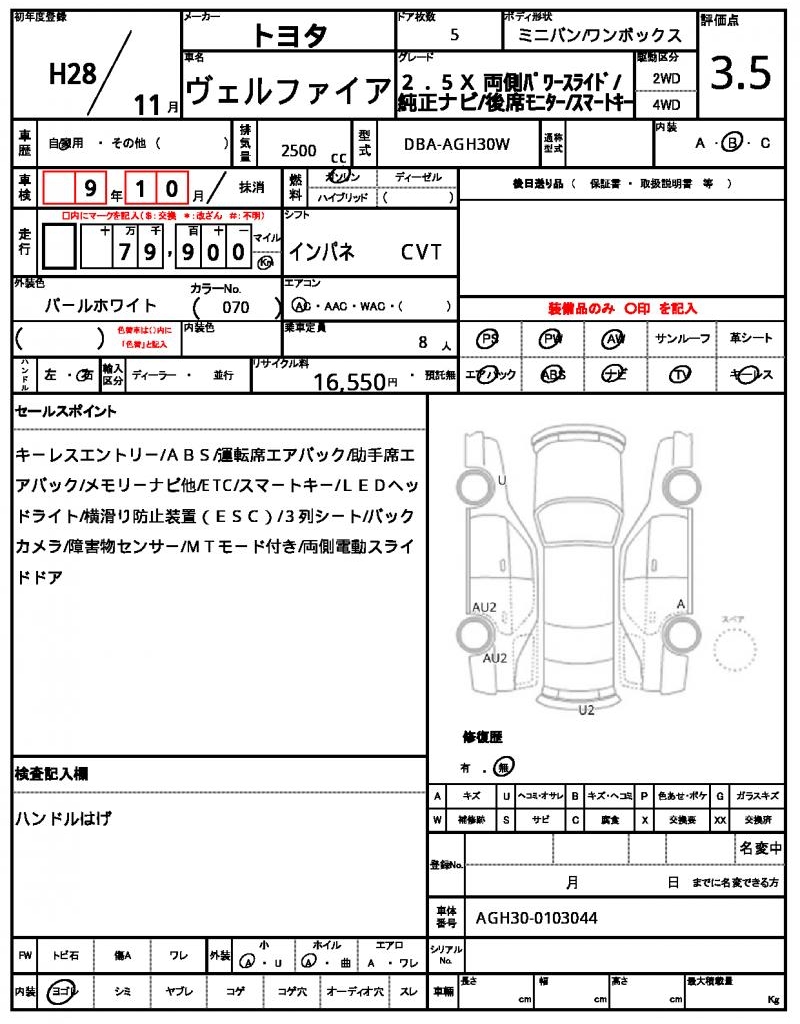 Meet this 2016 TOYOTA Vellfire, a sleek Pearl-colored minivan that’s perfect for families or groups on the go. Under the hood, you’ll find a reliable 2500cc gasoline engine, paired with a smooth 2WD drive system and features like power steering and power windows. As a used car from Japan, this Vellfire is now available for international buyers through AutoXGlobal. If you’re looking for a reliable and feature-packed Japanese used car export, look no further than this exceptional TOYOTA Vellfire.