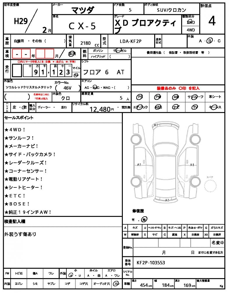 The 2017 MAZDA CX-5, a sleek red SUV, is a reliable and feature-packed ride. Its 2180cc diesel engine provides a smooth ride, and with power steering and power windows, navigating the road is a breeze. This used car is available for international buyers through AutoXGlobal, a trusted platform for Japanese used car exports. The MAZDA CX-5, a popular Japanese used car export, is ready to hit the roads of your country with its aluminum wheels and dependable 2WD drive.