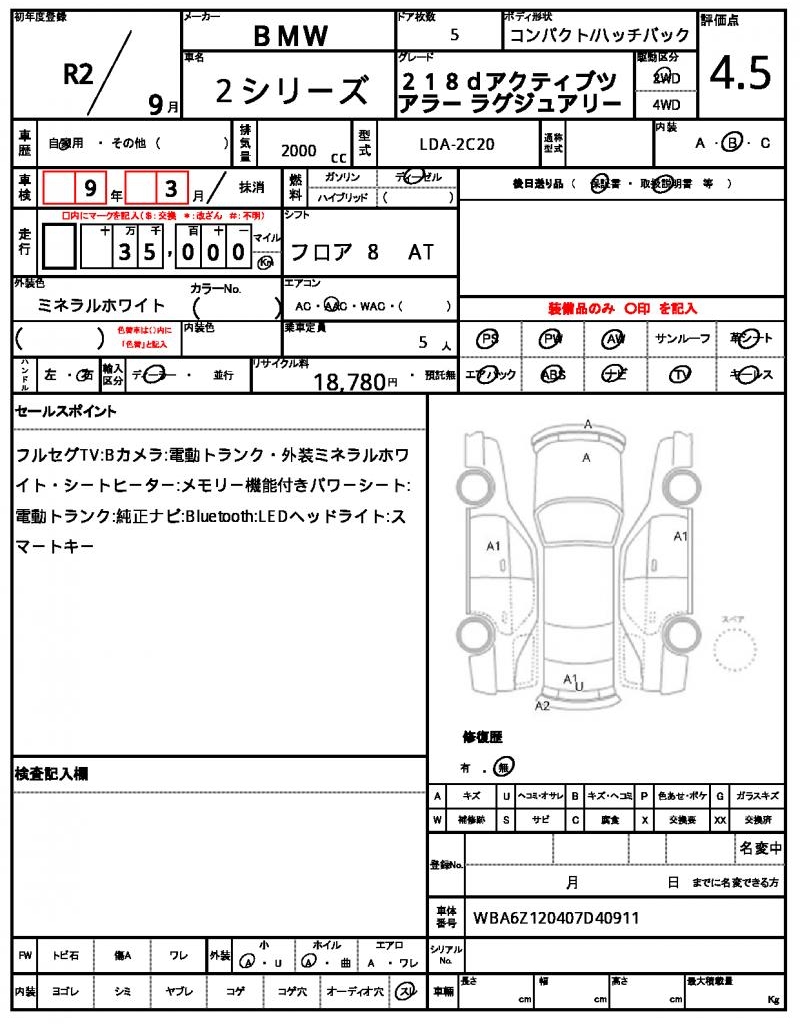This sleek white 2020 BMW 2 Series Hatchback is a real head-turner, featuring a powerful 2000cc diesel engine and 2-wheel drive for smooth cruising. Other highlights include power steering and power windows for added convenience. As a used car export from Japan, this fantastic vehicle is now available to international buyers through AutoXGlobal. If you’re in the market for a reliable and stylish Japanese used car export, look no further than this excellent 2020 BMW 2 Series Hatchback.