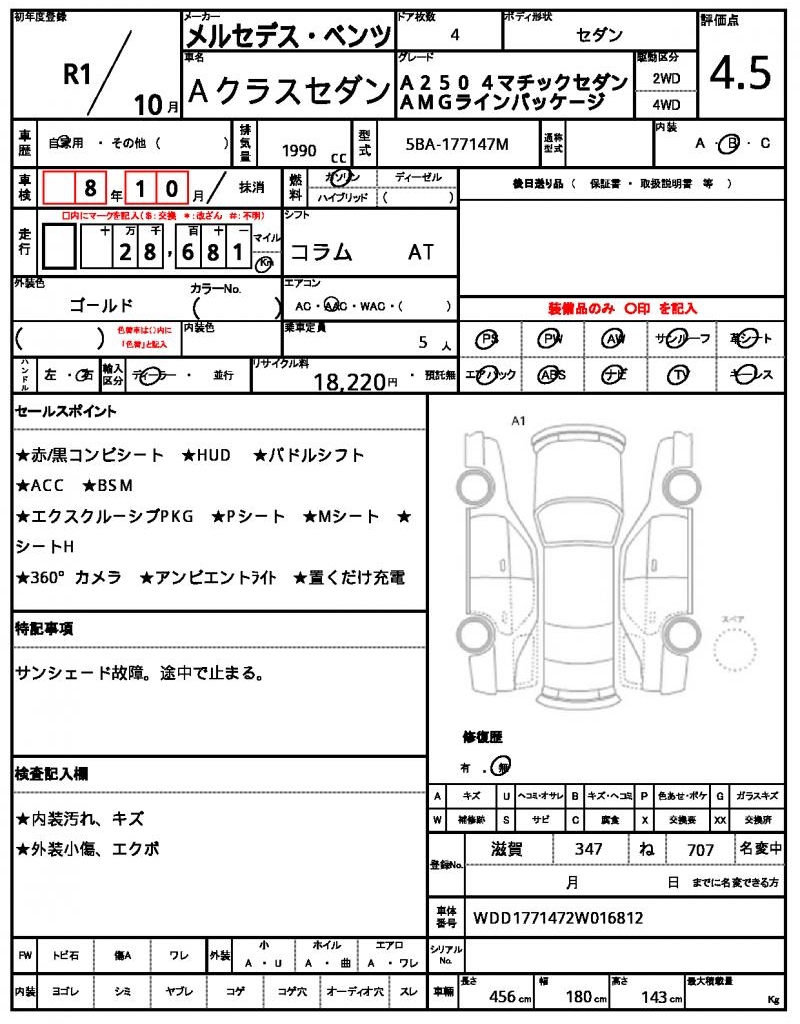Meet the 2019 MERCEDES BENZ A-CLASS SEDAN, a stunning gold sedan with a sleek design. Under the hood, you’ll find a reliable 1990cc gasoline engine, paired with a smooth 2WD drive system and features like power steering and power windows to make driving a breeze. As a used car, this MERCEDES BENZ A-CLASS SEDAN is available for international buyers through AutoXGlobal. This sought-after Japanese used car export is a great opportunity to own a quality MERCEDES BENZ A-CLASS SEDAN from Japan.