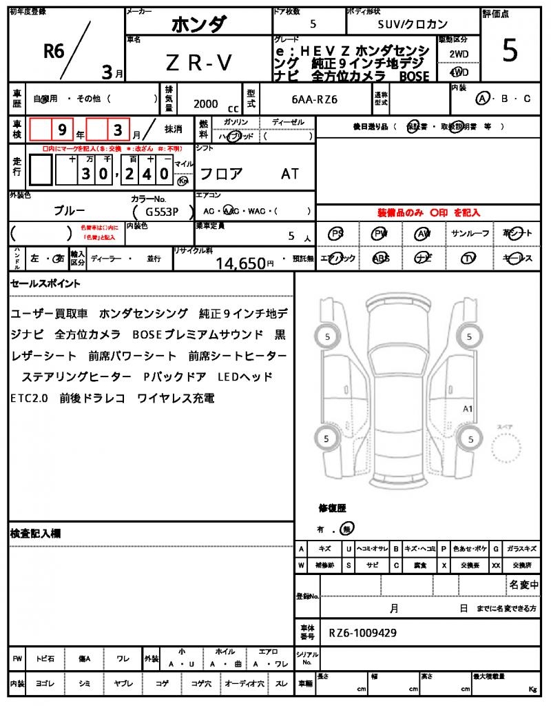 Meet the 2024 Honda ZR-V, a sleek and versatile blue SUV that’s sure to turn heads. Under the hood, you’ll find a reliable 2000cc hybrid engine, paired with a 4WD system for added traction and control. As a used car from Japan, this Honda ZR-V is available for international buyers through AutoXGlobal, offering a hassle-free export process. If you’re looking for a reliable and feature-packed ride, look no further than this Japanese used car export – a 2024 Honda ZR-V.
