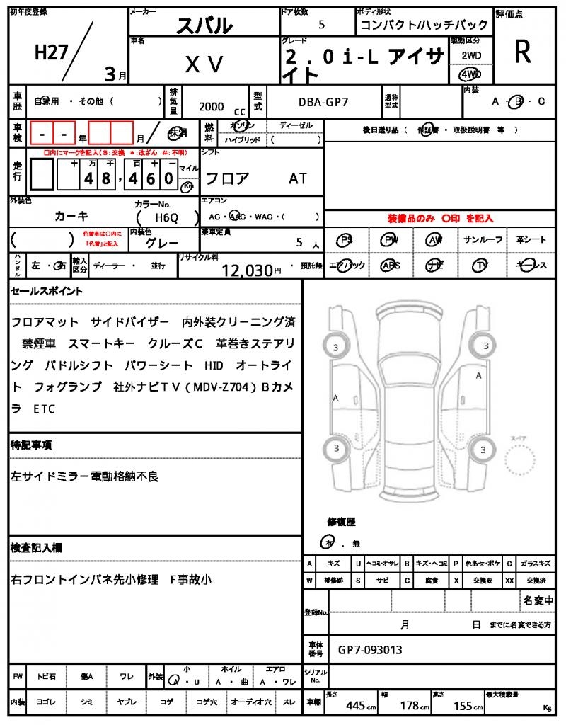 This 2015 Subaru XV Hatchback stands out with its vibrant green exterior. Under the hood, you’ll find a 2000 cc engine powered by gasoline, with the added convenience of power steering and power windows. As a used car from Japan, this Subaru XV is available exclusively through AutoXGlobal for international buyers. Whether you’re looking to import a reliable Japanese used car export, the 2015 Subaru XV Hatchback is a great choice for its rugged 4WD system and stylish aluminum wheels.