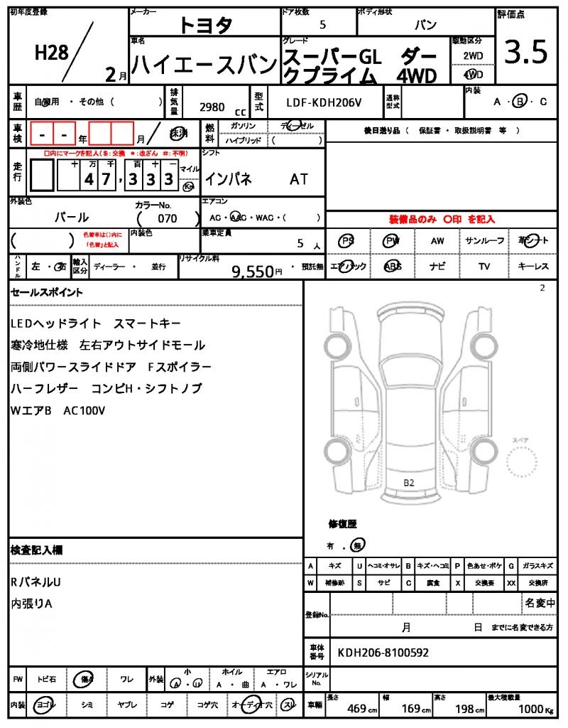 Meet the 2016 Toyota Hiace Van, a reliable and spacious minivan that exudes elegance in its Pearl finish. Under the hood, a 2980cc diesel engine provides plenty of power, coupled with a 4WD system for smooth handling. As a used car export from Japan, this Hiace Van is available through AutoXGlobal for international buyers seeking a trustworthy ride. Whether you’re looking for a family-friendly vehicle or a rugged companion for your business, the Toyota Hiace Van, export from Japan, is a great choice.