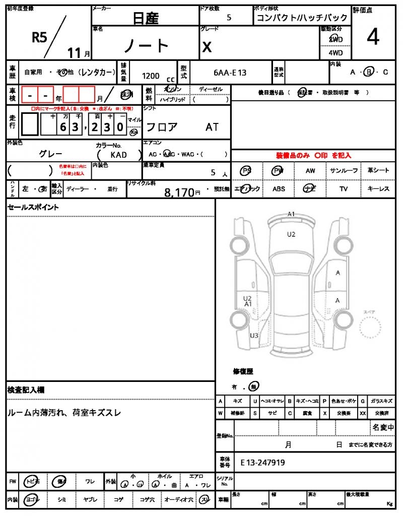 Meet the 2023 NISSAN NOTE, a sleek gray hatchback with a smooth ride and plenty of features to make daily driving a breeze. Under the hood, you’ll find a reliable 1200cc engine running on gasoline, with power steering and power windows to make navigating easy. This vehicle is a used car from Japan, now available through AutoXGlobal for international buyers. Don’t miss the chance to own this reliable NISSAN NOTE, available for export from Japan.