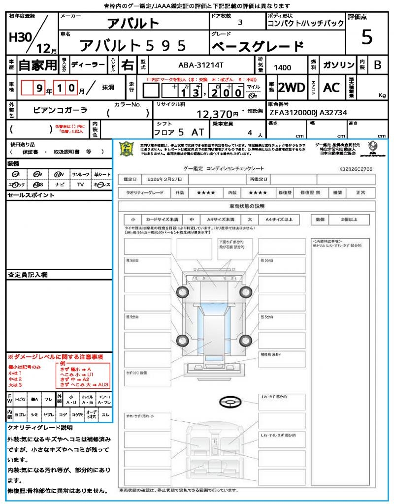 The 2018 Abarth 595 is a sleek white hatchback that’s sure to turn heads. Under the hood, you’ll find a 1400cc gasoline engine providing plenty of power, paired with 2WD for a smooth ride and responsive handling – features like power steering and power windows make it a joy to drive. This Japanese gem is now available for international buyers through AutoXGlobal, making it easy to bring this beauty to your doorstep. For those seeking a unique ride, the Abarth 595 export from Japan is a fantastic option, offering a blend of performance and practicality. The Abarth Abarth 595 is available for export from Japan through AutoXGlobal.