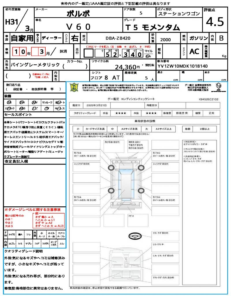 This 2019 VOLVO V60 Wagon boasts a sleek gray finish that’s sure to turn heads on the road. Under the hood, you’ll find a reliable 2000cc gasoline engine, paired with a 2WD drive system and featuring power steering for effortless maneuverability. As a used car from Japan, this VOLVO V60 is available for international buyers through AutoXGlobal, offering a hassle-free import process. Don’t miss out on this opportunity to own a high-quality Japanese used car export, the 2019 VOLVO V60 Wagon.