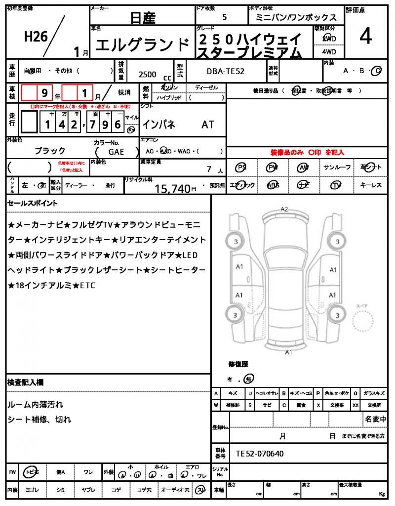 Meet this 2014 NISSAN ELGRAND, a sleek black minivan that’s sure to turn heads. Under the hood, you’ll find a 2500cc gasoline engine, paired with 2WD for a smooth ride. As a used car from Japan, this ELGRAND is available exclusively through AutoXGlobal for international buyers. Don’t miss out on this Japanese used car export, packed with features like power steering and power windows, all on a set of sturdy aluminum wheels.