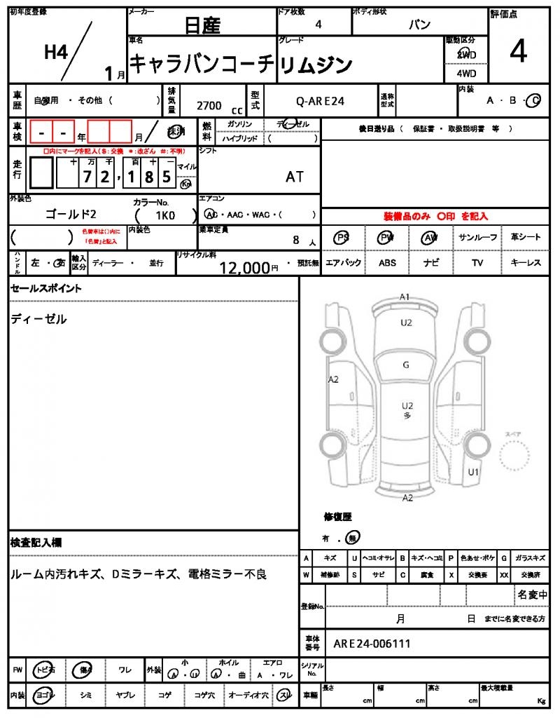 This 1992 NISSAN CARAVAN COACH is a rare gem, with its distinctive gold exterior and versatile minivan design. Under the hood, you’ll find a reliable 2700cc diesel engine, paired with a 2WD drive system for smooth handling. As you cruise around, you’ll appreciate the power steering and power windows, making every drive a breeze. Available through AutoXGlobal, this Japanese used car export is ready to hit the road for an international buyer looking for a reliable and unique ride.