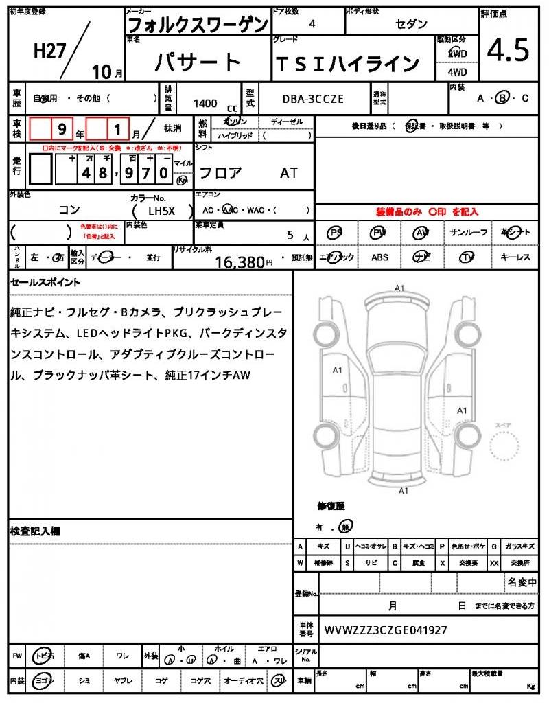 The 2015 Volkswagen Passat Sedan in sleek blue is a great find for anyone looking for a reliable ride. Powered by a 1400 cc gasoline engine and featuring 2-wheel drive, this sedan is easy to maneuver with its power steering and comfortable to ride with its power windows. As a used car from Japan, this vehicle is available through AutoXGlobal for international buyers looking to bring a high-quality import to their doorstep. If you’re in the market for a Japanese used car export, the 2015 Volkswagen Passat is a great choice with its aluminum wheels and more.