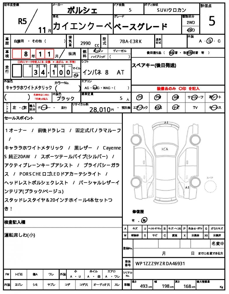 This stunning 2023 Porsche Cayenne Coupe is a head-turner in its crisp white finish, a perfect blend of style and substance. Under the hood, you’ll find a 2990 cc engine that purrs like a kitten, running on gasoline and sending power to all four wheels via a 4WD system – and with power steering and power windows, you’ll be cruising in comfort. If you’re looking for a unique ride, look no further – this Cayenne Coupe is a used car from Japan available through AutoXGlobal for international buyers. Explore the thrill of owning a Japanese used car export, a 2023 Porsche Cayenne Coupe that’s ready for its next adventure.