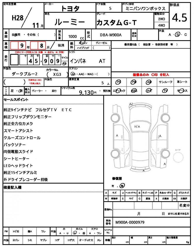 The 2016 TOYOTA ROOMY is a reliable and spacious blue minivan, perfect for families or groups on-the-go. Under the hood, you’ll find a 1000cc gasoline engine providing smooth power and featuring power steering and power windows for added convenience. As a used car from Japan, this TOYOTA ROOMY is available for international buyers through AutoXGlobal. Whether you’re looking for a practical Japanese used car export, the TOYOTA ROOMY is a great choice with its aluminum wheels and 2WD drive train.