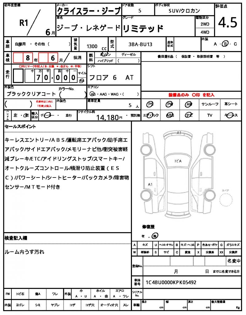 The 2019 Chrysler Jeep Renegade is a sleek black SUV that stands out on the road. Under the hood, you’ll find a 1300cc gasoline engine, paired with a 2WD drive system, making it perfect for city streets. This used car is now available through AutoXGlobal for international buyers looking for a reliable ride. The 2019 Chrysler Jeep Renegade, a top-notch Japanese used car export, comes equipped with power steering and power windows for added convenience. The Chrysler Jeep Jeep Renegade is available for export from Japan through AutoXGlobal.