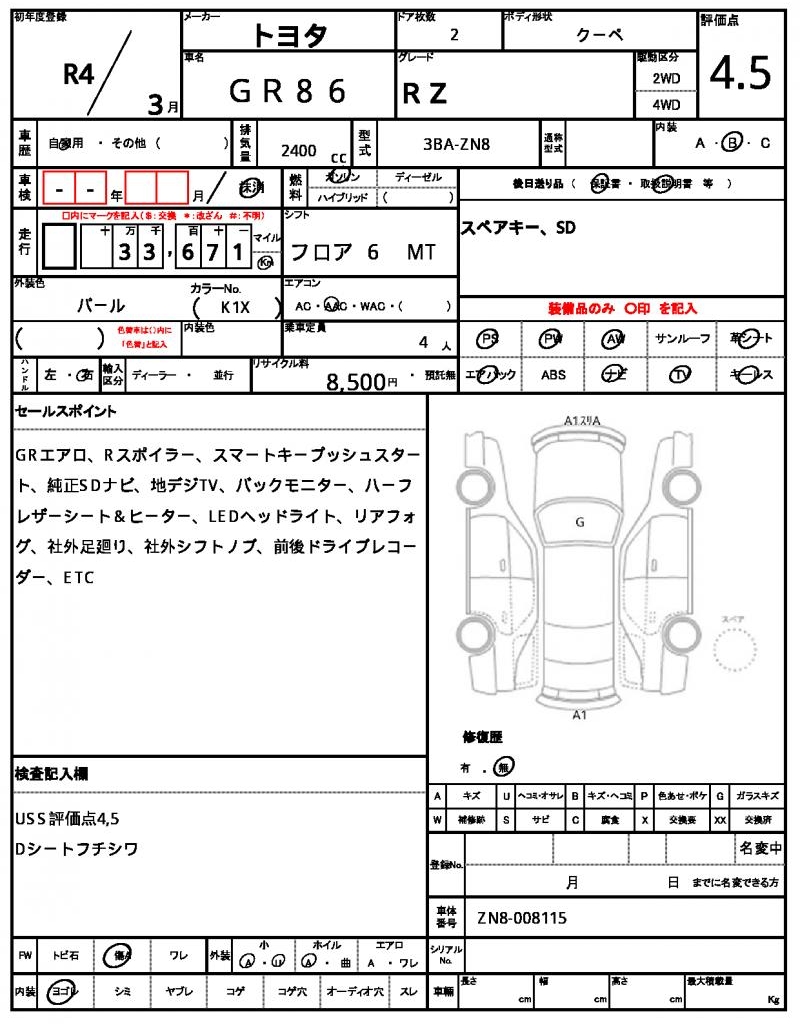 The 2022 TOYOTA GR86 Coupe is a stunning Pearl beauty, packed with performance and features. Under the hood, you’ll find a 2400 cc engine that purrs with a smooth 2.4-liter gasoline power, paired with 2WD for agile handling and power steering for effortless maneuvering. This Japanese gem is now available through AutoXGlobal for international buyers, offering a unique opportunity to own a high-quality used car from Japan. Experience the thrill of driving the TOYOTA GR86, a Japanese used car export that combines style, power, and reliability.