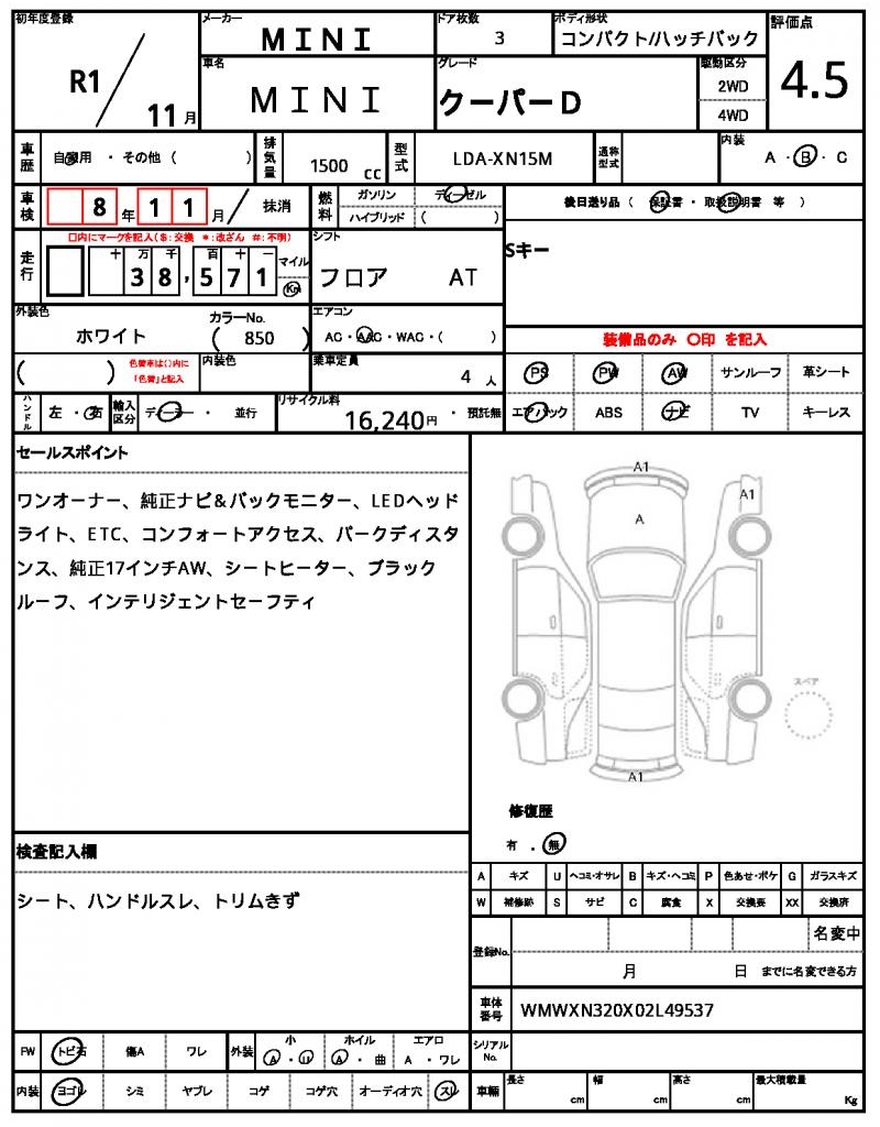 The 2019 MINI Hatchback, a sleek and stylish ride, rolls off the lot in crisp white. Under the hood, you’ll find a 1500 cc diesel engine, providing efficient power and smooth acceleration, along with features like power steering and power windows for a comfortable driving experience. As a used car from Japan, this MINI is now available for international buyers through AutoXGlobal. This Japanese used car export is a great opportunity to own a reliable and fun-to-drive MINI, with its sporty design and impressive fuel efficiency. The Mini Mini is available for export from Japan through AutoXGlobal.