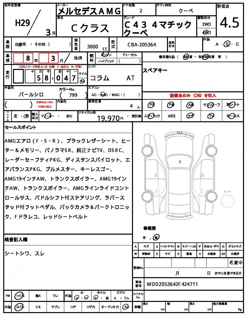 The 2017 Mercedes AMG C-Class Coupe in Pearl is a stunning ride that’s sure to turn heads. Under the hood, you’ll find a powerful 3000 cc engine that’s paired with a gasoline fuel system and all-wheel drive, making it a joy to handle on any road. This used car has been carefully sourced from Japan and is now available for international buyers through AutoXGlobal. Don’t miss out on the chance to own a piece of luxury with the 2017 Mercedes AMG C-Class Coupe export from Japan.