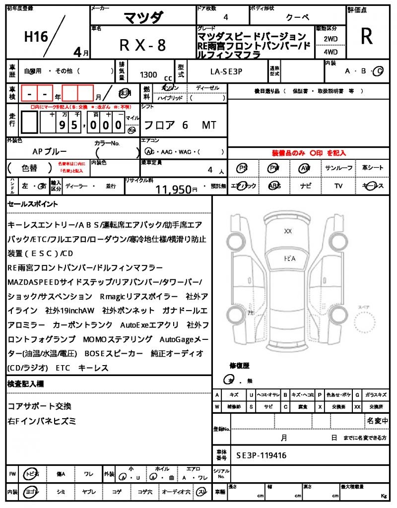 This sleek 2004 MAZDA RX-8 Coupe stands out with its vibrant blue paint job, a color that’s sure to turn heads on the road. Under the hood, you’ll find a reliable 1300cc gasoline engine, paired with a 2WD drivetrain and features like power steering and power windows for added convenience. If you’re an international buyer looking for a great deal on a used car, AutoXGlobal has got you covered – we offer a wide range of vehicles like this MAZDA RX-8, all available for export from Japan. Don’t miss out on this fantastic opportunity to own a piece of Japanese engineering – check out this 2004 MAZDA RX-8 export from Japan today!