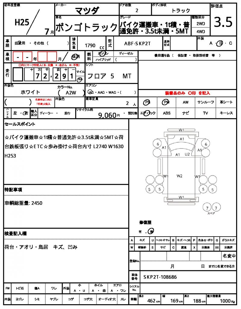 This 2013 Mazda Bongo Truck is a reliable and versatile white truck that’s perfect for both personal and commercial use. Under the hood, you’ll find a 1790 cc gasoline engine that’s paired with a 2WD drive system, making it easy to navigate various terrain. As a used car from Japan, this Mazda Bongo Truck is now available for international buyers through AutoXGlobal. Whether you’re looking for a rugged work vehicle or a family-friendly hauler, this Japanese used car export is a great option to consider.