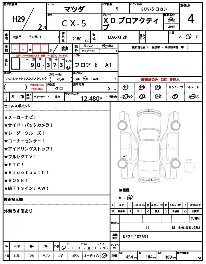 The 2017 MAZDA CX-5, a sleek red SUV, is a reliable and feature-packed ride. Its 2180cc diesel engine provides a smooth ride, and with power steering and power windows, navigating the road is a breeze. This used car is available for international buyers through AutoXGlobal, a trusted platform for Japanese used car exports. The MAZDA CX-5, a popular Japanese used car export, is ready to hit the roads of your country with its aluminum wheels and dependable 2WD drive.