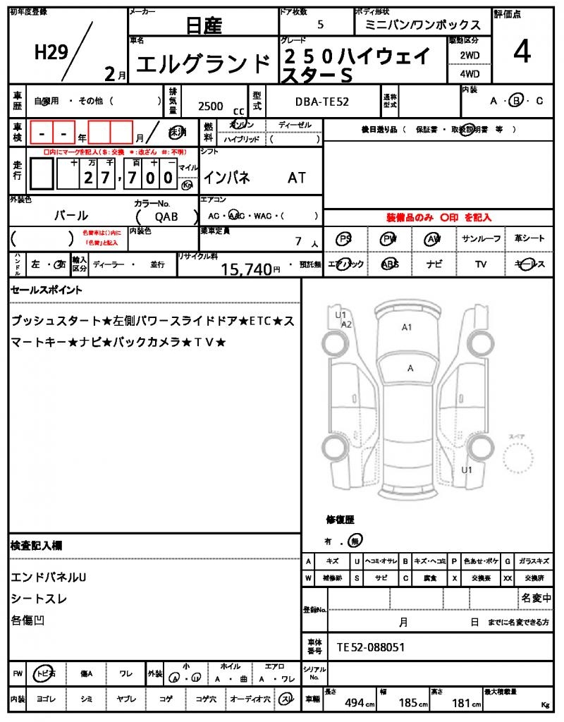 The 2017 Nissan Elgrand is a stunning Pearl minivan that’s sure to turn heads. Under the hood, you’ll find a 2500 cc engine that runs smoothly on gasoline, paired with a 2WD drive system and features like power steering and power windows. As a used car from Japan, this Elgrand is now available through AutoXGlobal for international buyers. Explore the world of Japanese used car exports with us and discover the reliability and quality of this 2017 Nissan Elgrand export from Japan.