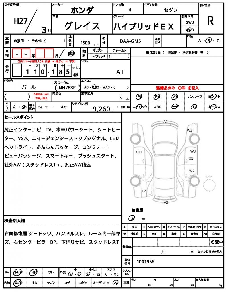 This stunning 2015 Honda Grace is a Pearl-colored sedan that exudes elegance and reliability. Under the hood, a 1500 cc gasoline engine provides a smooth ride, while the 4WD drive system ensures you’re always in control. As a used car from Japan, this Honda Grace is now available through AutoXGlobal for international buyers seeking a reliable and feature-packed ride. Whether you’re cruising through the city or navigating rough terrain, this Japanese used car export is sure to provide a comfortable and enjoyable driving experience.
