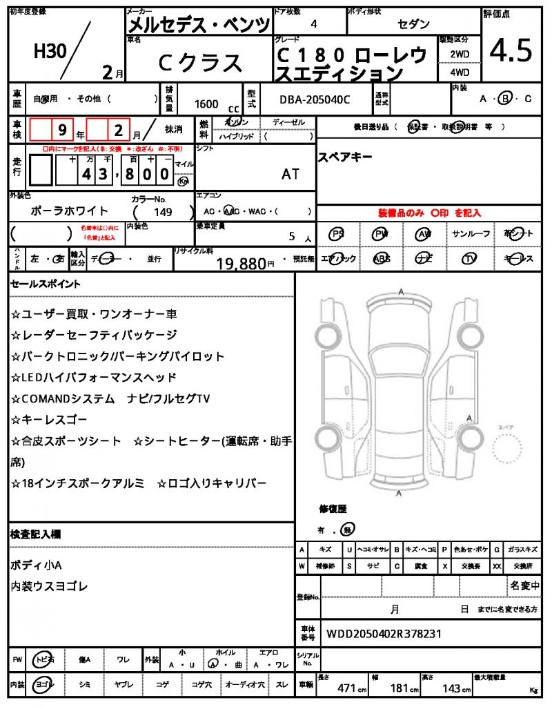 This 2018 Mercedes Benz C-Class Sedan in white is a sleek and reliable ride. Under the hood, you’ll find a 1600cc gasoline engine paired with a 2-wheel drive system, making it perfect for navigating city streets and highways. As a used car from Japan, this Mercedes Benz C-Class Sedan is available for international buyers through AutoXGlobal. For those looking to export a Japanese used car, this Mercedes Benz C-Class Sedan is a great option, featuring power steering and power windows for added convenience.