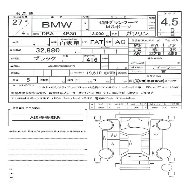 This sleek black 2015 BMW 4 SERIES Coupe is a stunning example of German engineering. Under the hood, you’ll find a powerful 3000 cc gasoline engine, paired with 2WD drive and featuring the convenience of power steering and power windows. As a used car from Japan, this 4 SERIES is available for international buyers through AutoXGlobal. Whether you’re looking to import a reliable ride or simply want to get behind the wheel of a Japanese used car export, this BMW 4 SERIES Coupe is a fantastic choice.