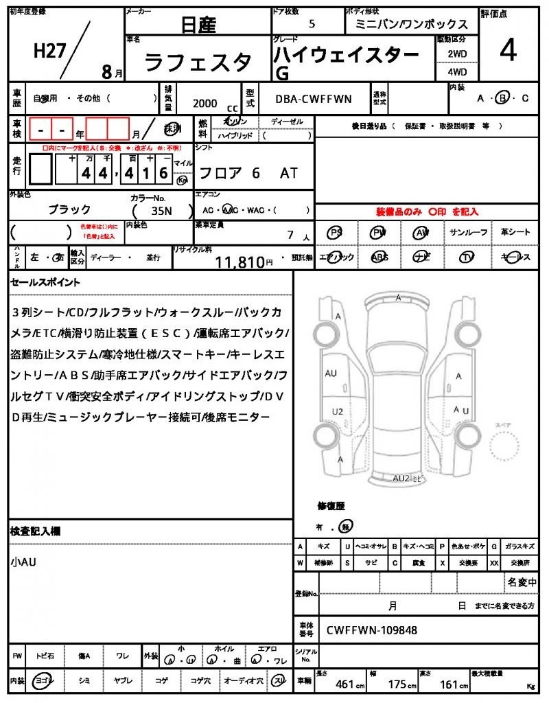 This 2015 NISSAN LAFESTA is a sleek black minivan that packs a punch with its reliable 2000 cc gasoline engine and 2WD drive system. You’ll enjoy effortless steering with power steering and convenient window adjustments with power windows. As a used car from Japan, this LAFESTA is available through AutoXGlobal for international buyers. This Japanese used car export is a great option for those looking for a reliable and feature-packed minivan from a trusted brand.