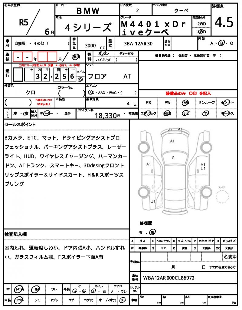 This sleek 2023 BMW 4 SERIES Coupe cuts a sharp figure in its black exterior, with its sporty lines and aluminum wheels giving it a road-hungry look. Under the hood, a powerful 3000 cc gasoline engine provides the oomph, paired with a smooth 4WD drive system and features like a driver’s airbag and car navigation system for added peace of mind. As a used car export, this BMW 4 SERIES is available through AutoXGlobal for international buyers looking for a reliable and stylish ride. Whether you’re looking for a Japanese used car export or just want to own a piece of the iconic BMW brand, this 4 SERIES Coupe is a fantastic choice.