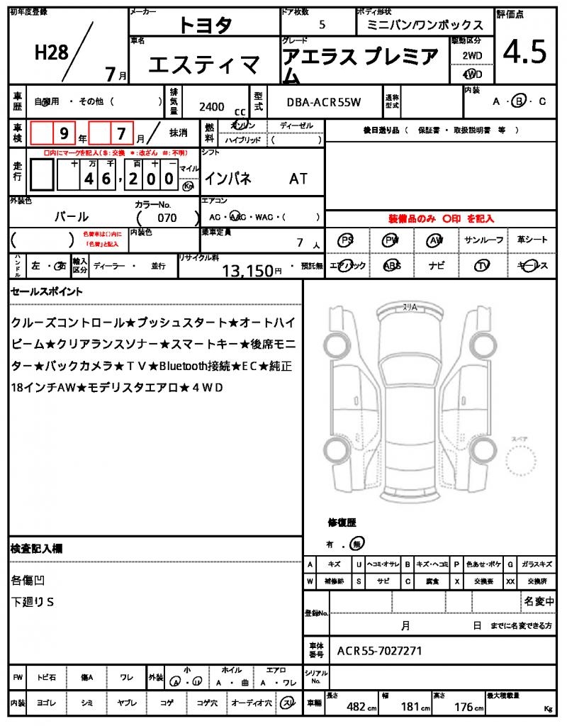 The 2016 Toyota Estima is a stunning pearl-colored minivan that’s sure to turn heads on the road. Under the hood, you’ll find a reliable 2400 cc engine that runs smoothly on gasoline and features power steering for easy maneuverability. As a used car from Japan, this Estima is available for international buyers through AutoXGlobal, making it an exciting opportunity to bring a piece of Japanese quality to your driveway. With its 4WD capabilities and aluminum wheels, this Estima is the perfect vehicle for families or commuters looking for a reliable and spacious ride, available for export from Japan.
