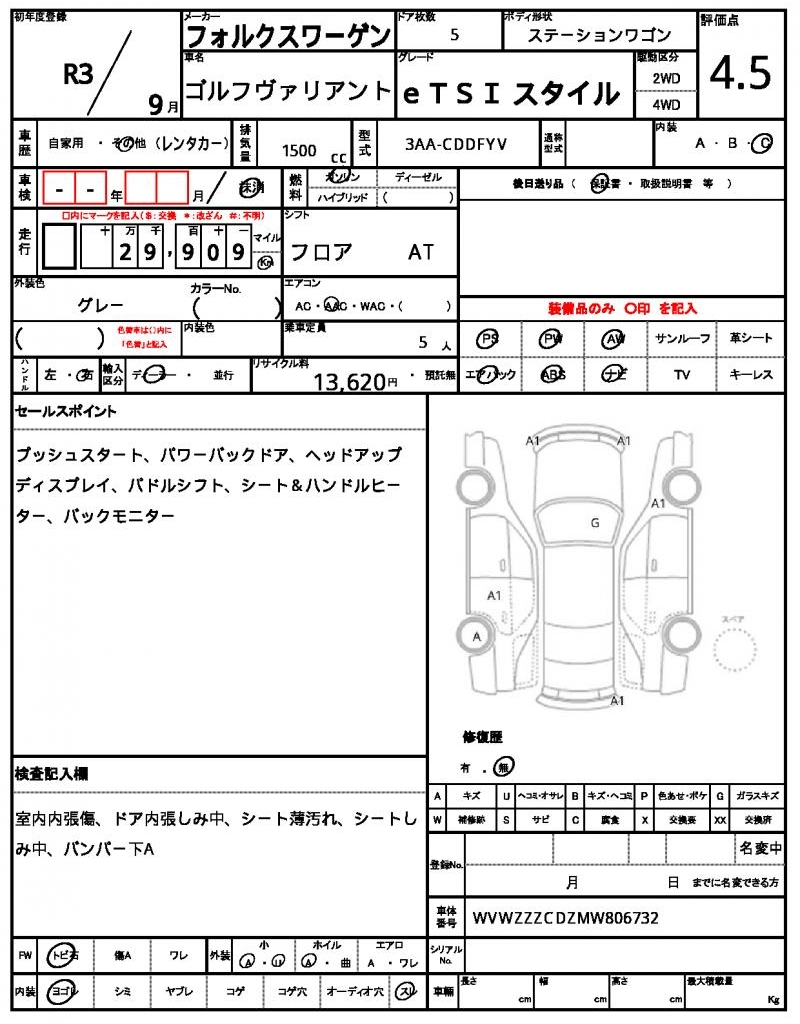 The 2021 Volkswagen Golf Variant is a reliable and practical gray wagon that’s ready for its next adventure. Under the hood, you’ll find a fuel-efficient 1500cc gasoline engine paired with a 2WD drive system, making it perfect for daily commuting. As a used car export from Japan, this Golf Variant is available through AutoXGlobal for international buyers looking for a quality ride. Whether you’re a family or a commuter, the Golf Variant’s power steering and power windows make it a comfortable and convenient choice for your next ride – a Japanese used car export.