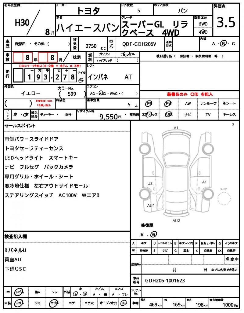This bright yellow 2018 TOYOTA HIACE VAN is a reliable and spacious minivan perfect for families or businesses. Under the hood, you’ll find a powerful 2750cc diesel engine that’s paired with a 4WD system, making it a great choice for off-road adventures. As a used car from Japan, this HIACE VAN has been well-maintained and is now available for international buyers through AutoXGlobal. If you’re looking for a sturdy and feature-packed Japanese used car export, look no further than this TOYOTA HIACE VAN.