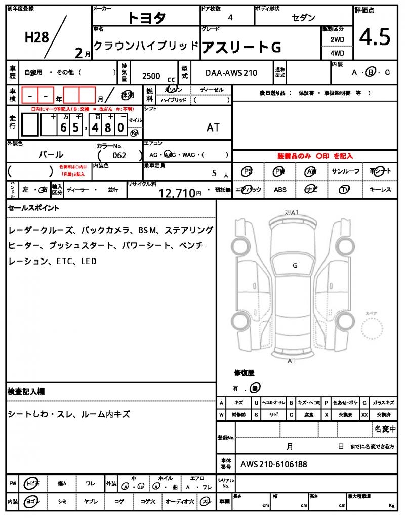 The 2016 Toyota Crown Hybrid Pearl sedan boasts a sleek design and impressive fuel efficiency. Under the hood, you’ll find a 2500cc gasoline engine, paired with a 2WD system for smooth handling. As a used car from Japan, this Crown Hybrid is available for international buyers through AutoXGlobal. With features like power steering and power windows, this Toyota Crown Hybrid is a great export from Japan option for those looking for a reliable and comfortable ride.
