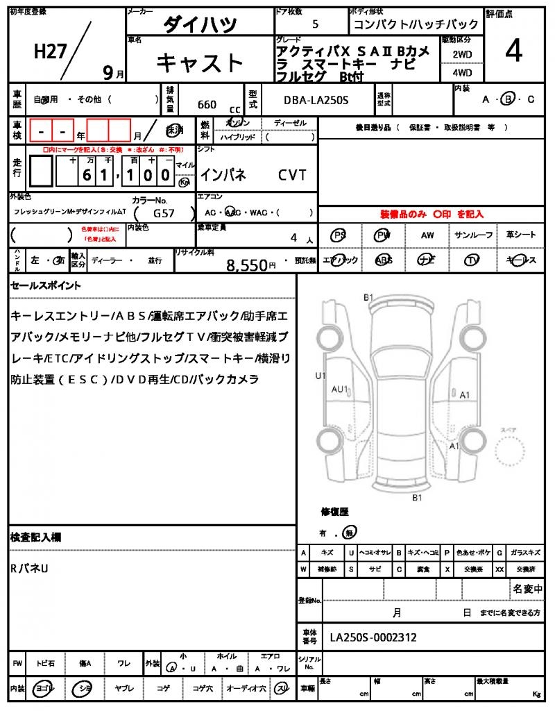 This charming 2015 Daihatsu Cast hatchback stands out in its vibrant green color. Under the hood, you’ll find a reliable 660cc gasoline engine, paired with a 2WD drive system and powered steering for a smooth ride. As a used car from Japan, this vehicle is available for international buyers through AutoXGlobal. The Daihatsu Cast, a trusted Japanese brand, is now available for export from Japan.