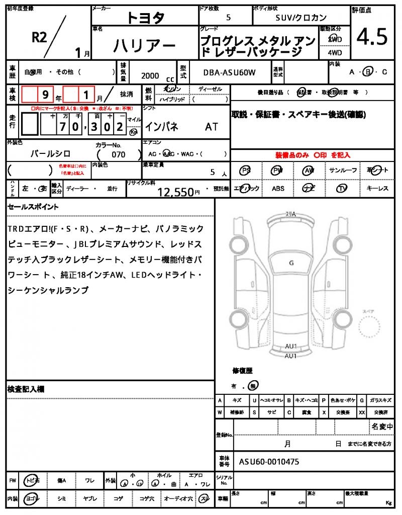 Meet the 2020 Toyota Harrier, a sleek Pearl-colored SUV that exudes style and reliability. Under the hood, you’ll find a 2000 cc engine that runs smoothly on gasoline, paired with a 2WD drive system and featuring power steering for easy maneuverability. As a used car from Japan, this Harrier is available for international buyers through AutoXGlobal. Whether you’re looking for a reliable daily driver or a trustworthy companion for adventures, the 2020 Toyota Harrier export from Japan is a great choice.