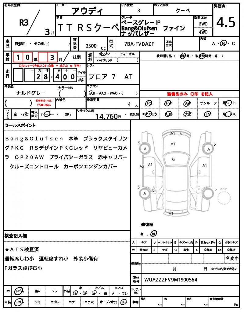 Meet the 2021 AUDI TT RS COUPE, a sleek gray coupe that exudes performance and style. Under the hood, you’ll find a powerful 2500cc gasoline engine, paired with a 4WD system for maximum traction and control, along with features like power steering and power windows for added convenience. This exceptional vehicle is a used car export from Japan, available exclusively through AutoXGlobal for international buyers. If you’re looking for a high-performance coupe like the AUDI TT RS COUPE, export from Japan with AutoXGlobal.