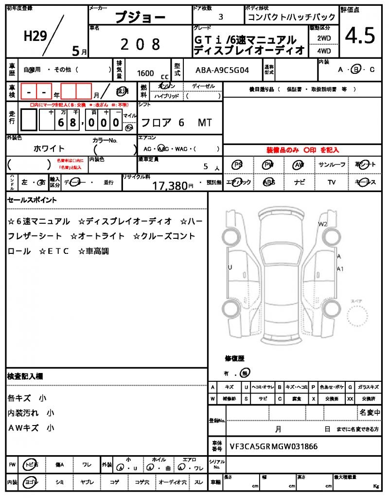 Meet the 2017 PEUGEOT 208, a stylish white hatchback that’s ready to hit the road. Under the hood, you’ll find a reliable 1600 cc gasoline engine, paired with a smooth 2WD system and equipped with features like power steering and power windows. As a used car from Japan, this vehicle is available exclusively through AutoXGlobal for international buyers. For those looking for a reliable and affordable ride, the PEUGEOT 208 export from Japan is an excellent choice.