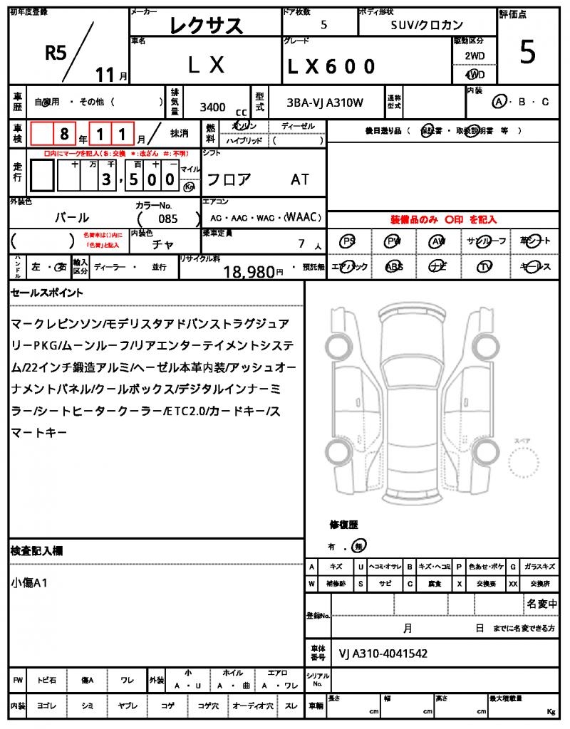 This 2023 LEXUS LX Pearl SUV is a head-turner with its sleek design and impressive features. Under the hood, you’ll find a powerful 3400cc gasoline engine paired with a 4WD system, making it perfect for off-road adventures. As a used car from Japan, this LEXUS LX is now available for international buyers through AutoXGlobal. With its power steering and power windows, this Japanese used car export is a great option for those looking for a reliable and feature-packed SUV.