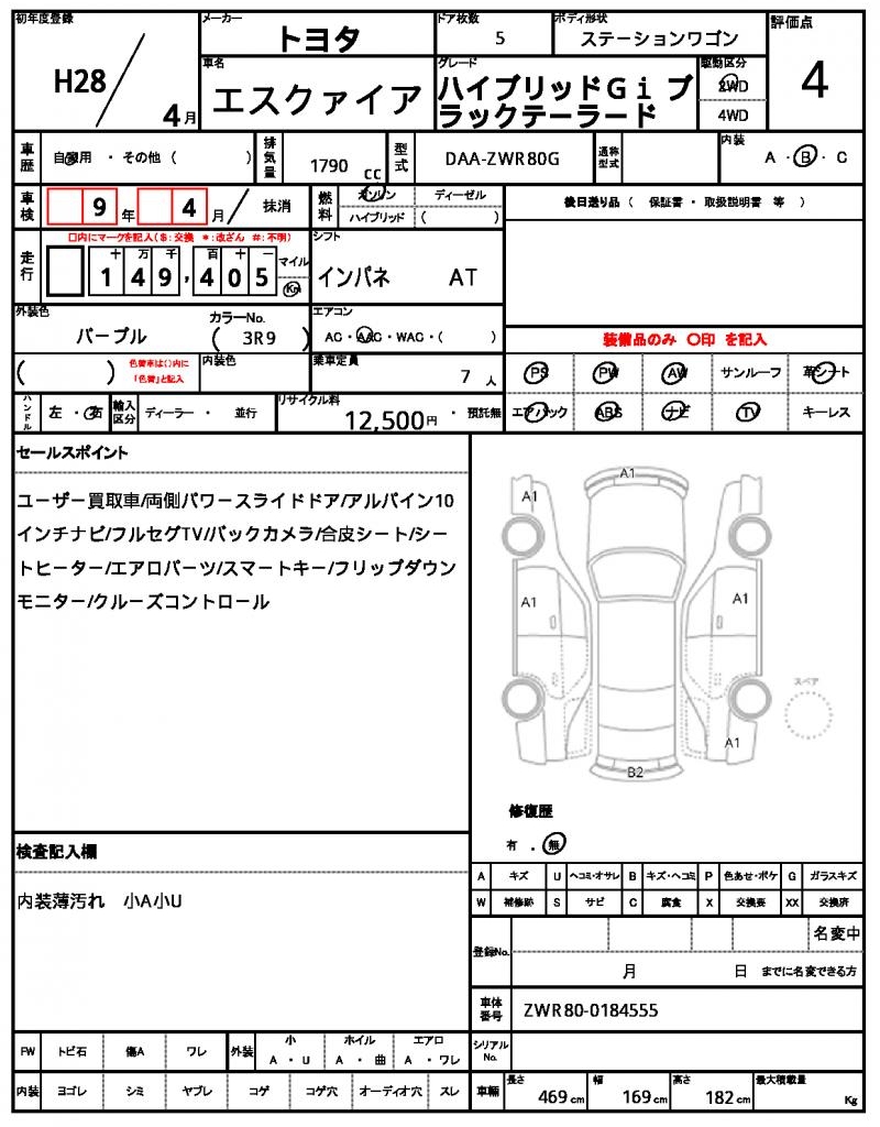 Meet the 2016 TOYOTA ESQUIRE Wagon, a stunning purple ride with a powerful 1790 cc gasoline engine and 2WD drivetrain. This reliable ride features power steering and power windows for added convenience, and its aluminum wheels give it a sleek look. This is a used car from Japan, available exclusively through AutoXGlobal for international buyers. The TOYOTA ESQUIRE Wagon is a fantastic Japanese used car export option for those looking for a spacious and feature-packed ride.